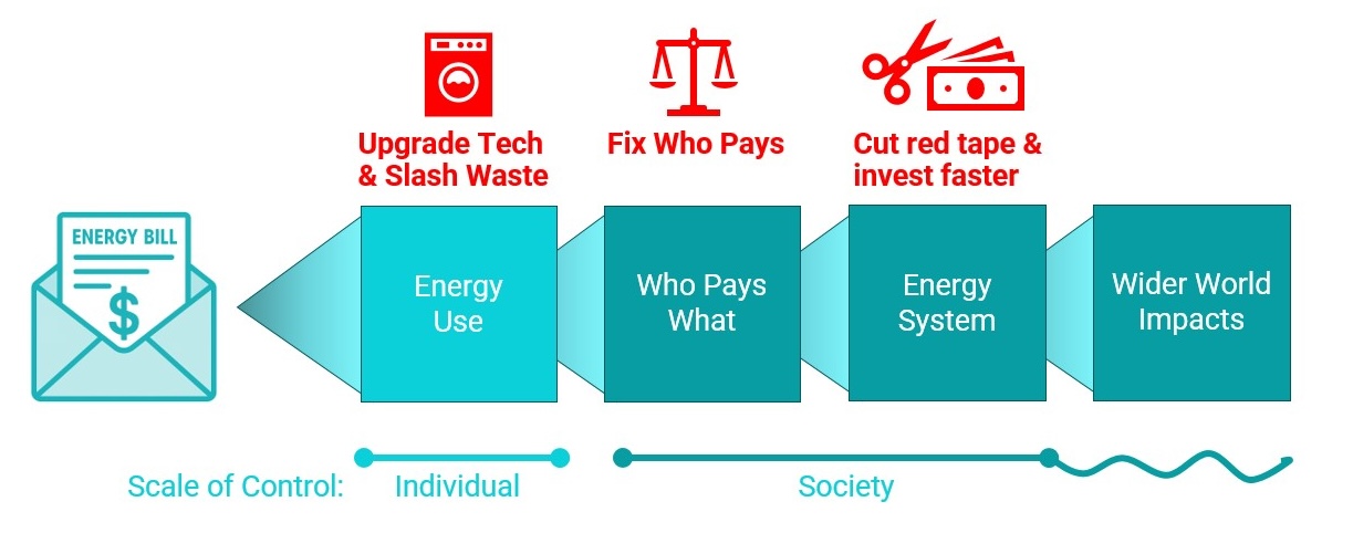 In order to make energy bills affordable, we must first understand what makes them un-affordable. The energy system is complex and varied. Many efforts to address affordability only look at one area. This is like the old story about people in a dark building encountering different parts of an elephant and thinking each part is something else. We want to look at the whole elephant.
