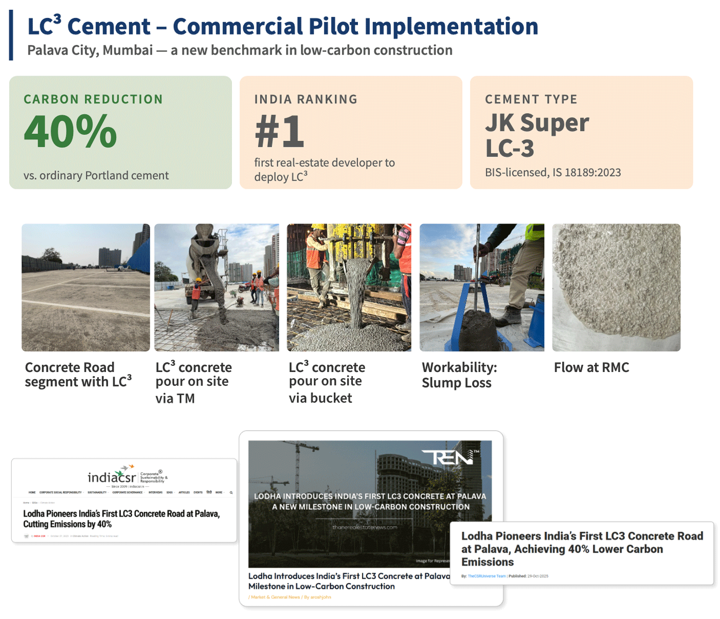 Snippets from India’s first commercial-scale LC³ pilot at Palava City, Mumbai