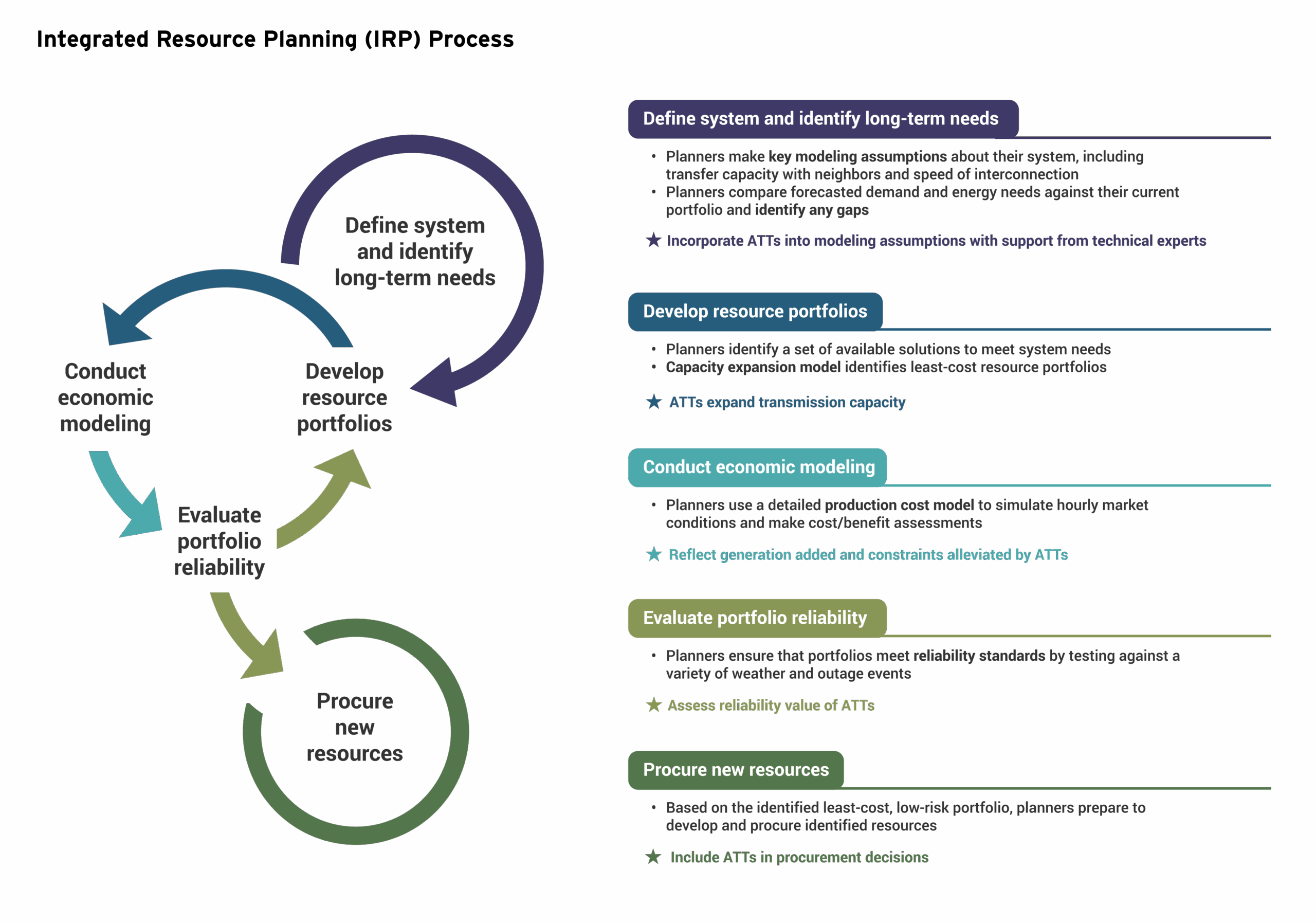 - Planning laws require utilities, public utility commissions (PUCs), and/or grid operators to study the economics and feasibility of ATTs during resource and transmission planning. Some laws require ATT deployment if studies show they are cost-effective; others leave more discretion to utilities and regulators. Some planning laws require that ATTs be included in integrated resource plans (IRPs) or require large transmission owners to submit a separate GETs evaluation.