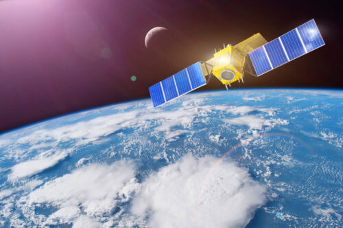 Space satellite in orbit around the Earth. Elements of this image furnished by NASA.