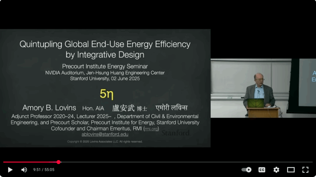 This article is based on a lecture Amory Lovins gave for Stanford’s Energy Seminar on June 2, 2025. You can visit the event webpage or watch the recording of his lecture here.